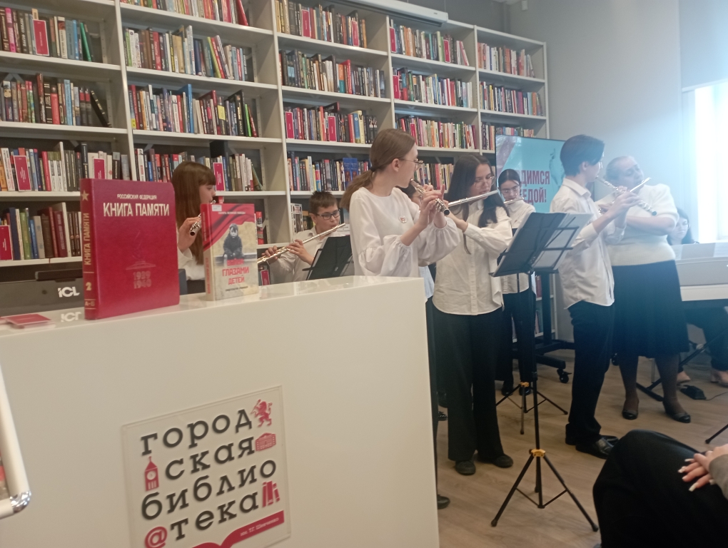 Хор флейт «Нюанс» из Детской школы искусств №6 исполнил попурри из военных песен. Музыка добавила трогательности мероприятию.