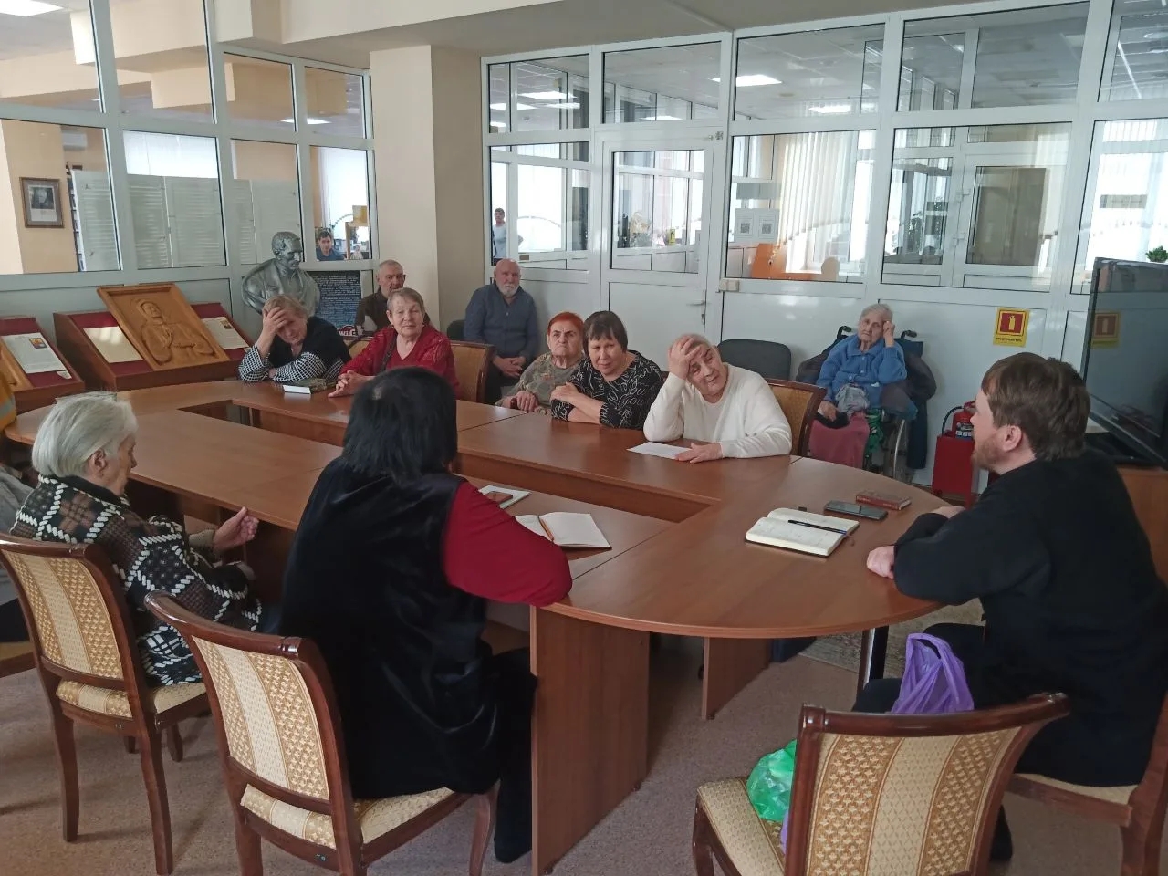 Получателей социальный услуг Пансионата «Родник» пригласили в Краевую специальную библиотеку – центр социокультурной реабилитации инвалидов по зрению на встречу со священником, на Евангельские чтения. В век современных технологий многим интересна музыка, новости, телевидение, а на Евангелие времени не хватает. Батюшка подробно объяснял и читал отрывки из Святого Евангелия, получатели социальных услуг внимательно и с благоволением слушали его, вступали в диалог, задавали вопросы. Уезжали со встречи с благодарностью и с надеждой на повторные встречи, уже в Пансионате «Родник».