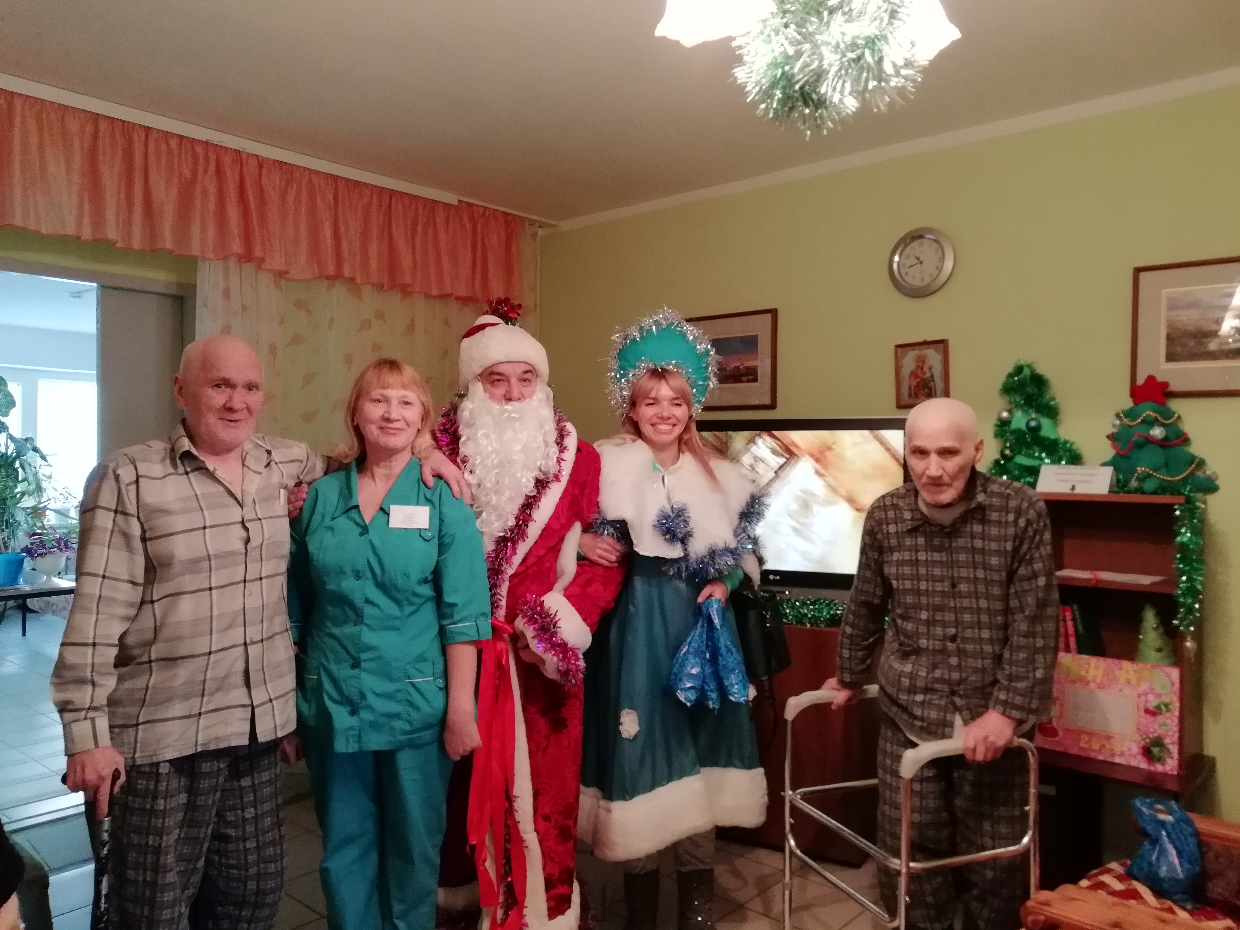 Веселая, шумная компания во главе с Дедом Морозом и Снегурочкой подарили проживающим новогодние подарки и свои искренние улыбки, подняв всем настроение.