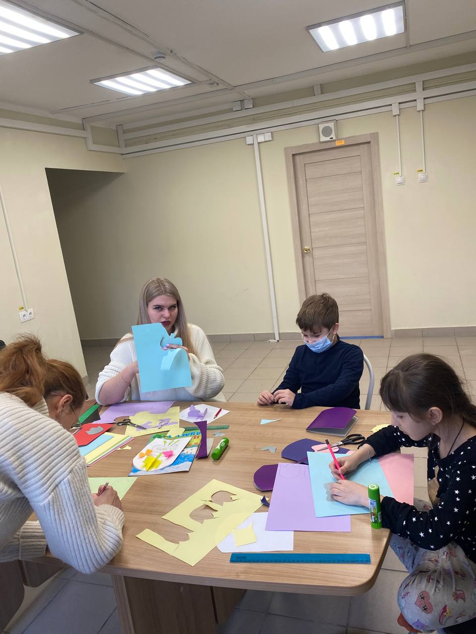 Вчера, в преддверии 8 марта, для детей вынужденно покинувших территорию боевых действий проживающих в отделении «Социальная гостиница», прошёл мастер-класс по изготовлению поздравительной открытки. Дети совместно со студентами Красноярского юридического техникума подготовили открытки для самых важных и любимых в их жизни людей — мам и бабушек. Ребята очень старались, ведь они знают, что подарок, приготовленный своими руками, будет самым дорогим и особенным.